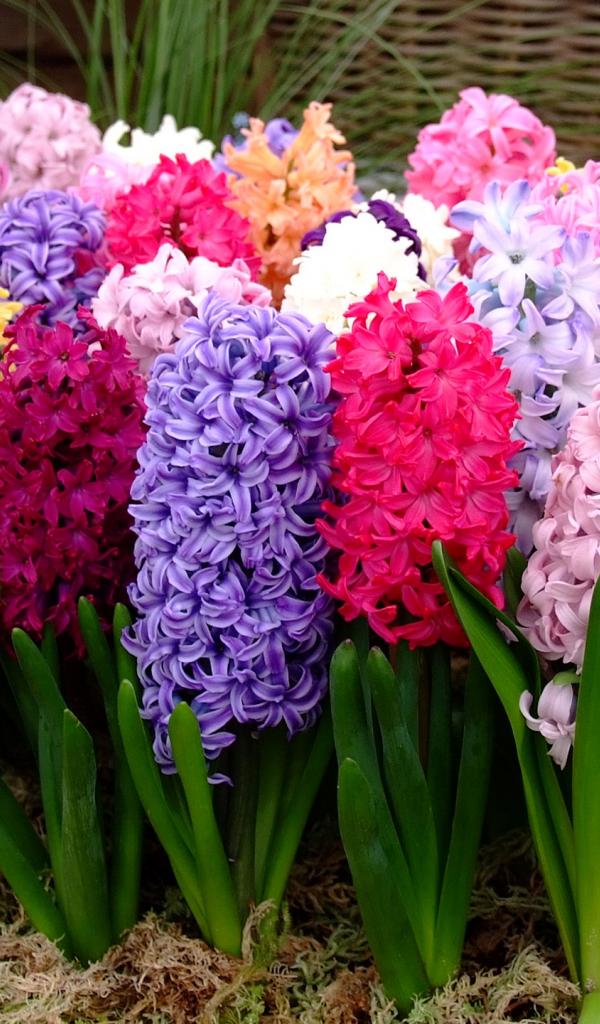 Wallpaper Multi-colored hyacinths on the flowerbed