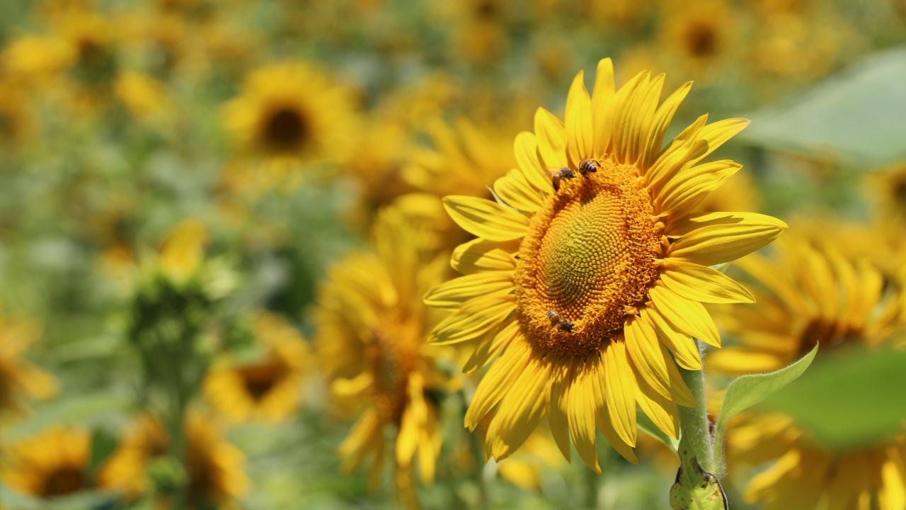 Wallpaper Flowers of a sunflower with bees on the field