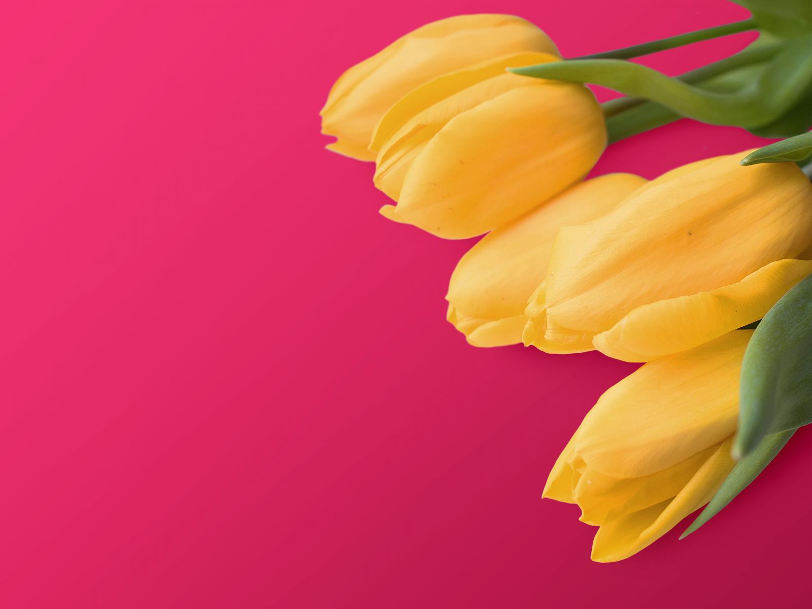 Wallpaper Bouquet of yellow tulips on a pink background