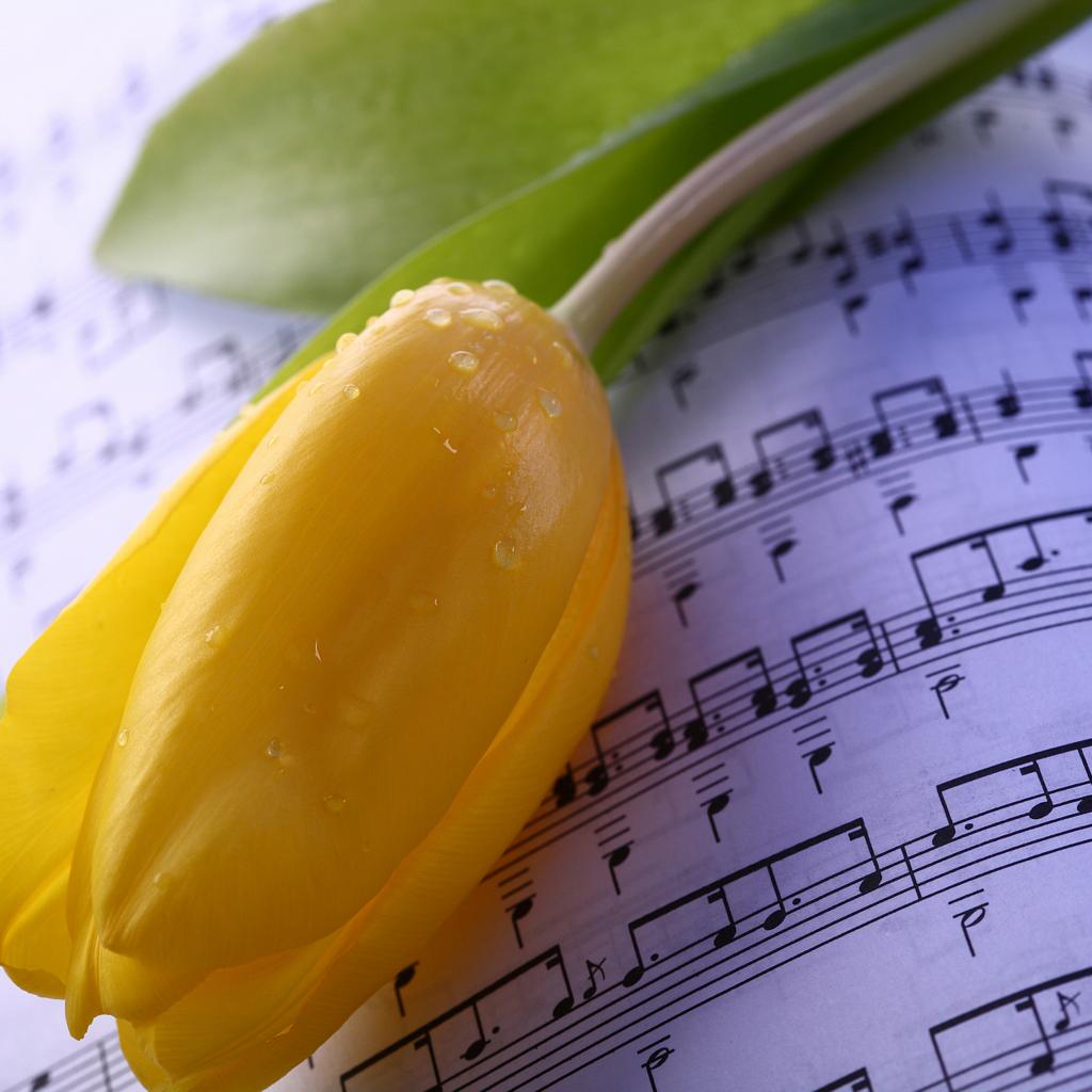 » Wallpaper Yellow tulip lies on notes