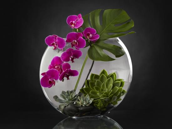 Wallpaper Live aquarium with orchid flowers on a gray background