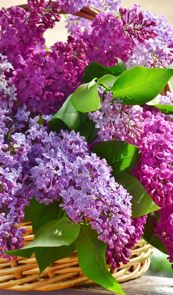 Wallpaper A bouquet of beautiful lilac in a basket