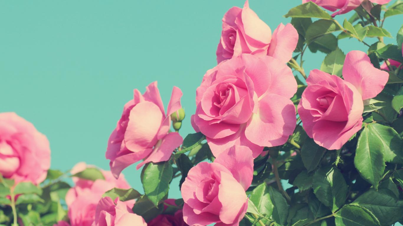 Wallpaper Beautiful pink roses on a blue background