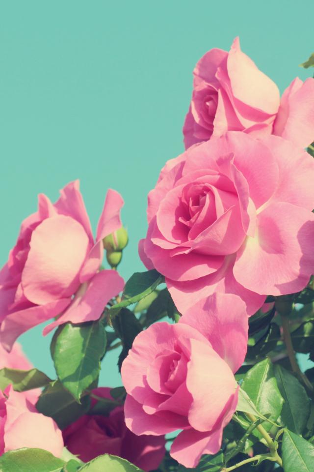 Wallpaper Beautiful pink roses on a blue background
