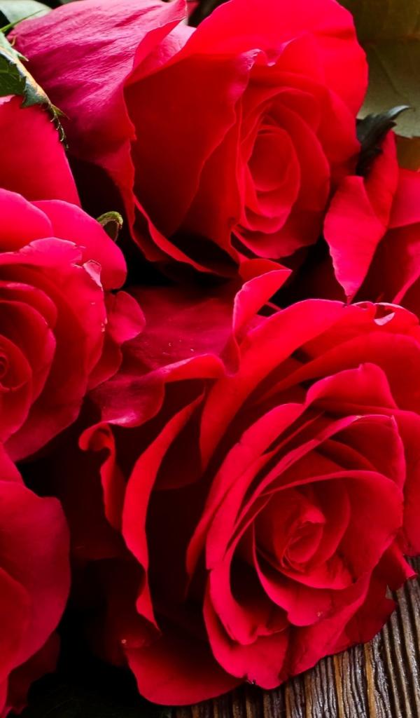 Wallpaper Beautiful bouquet of roses lies on a wooden surface