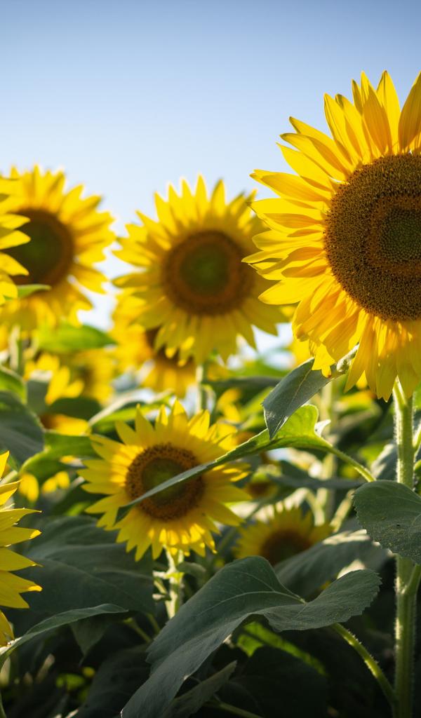 Wallpaper Flowering yellow sunflowers against the blue sky