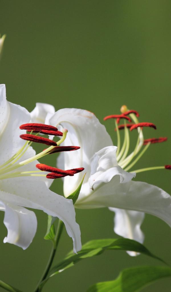 Wallpaper Two delicate white lilies with a bud