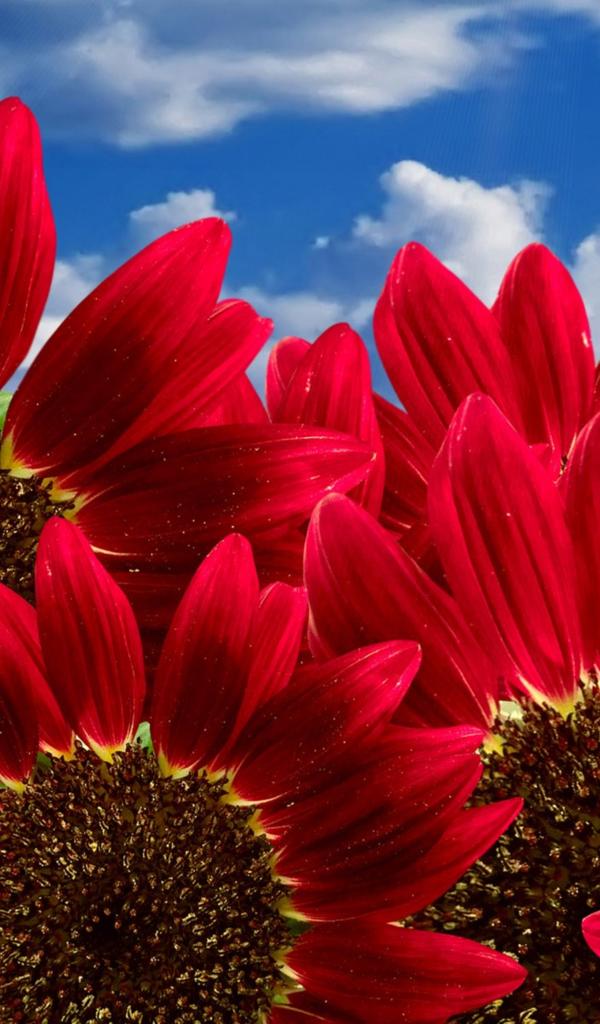 Wallpaper Decorative sunflowers against the blue sky