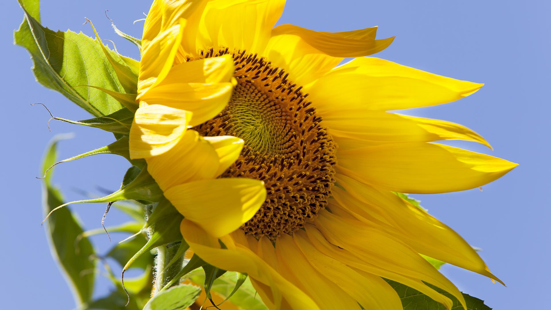 Wallpaper Yellow flower of a sunflower against the blue sky