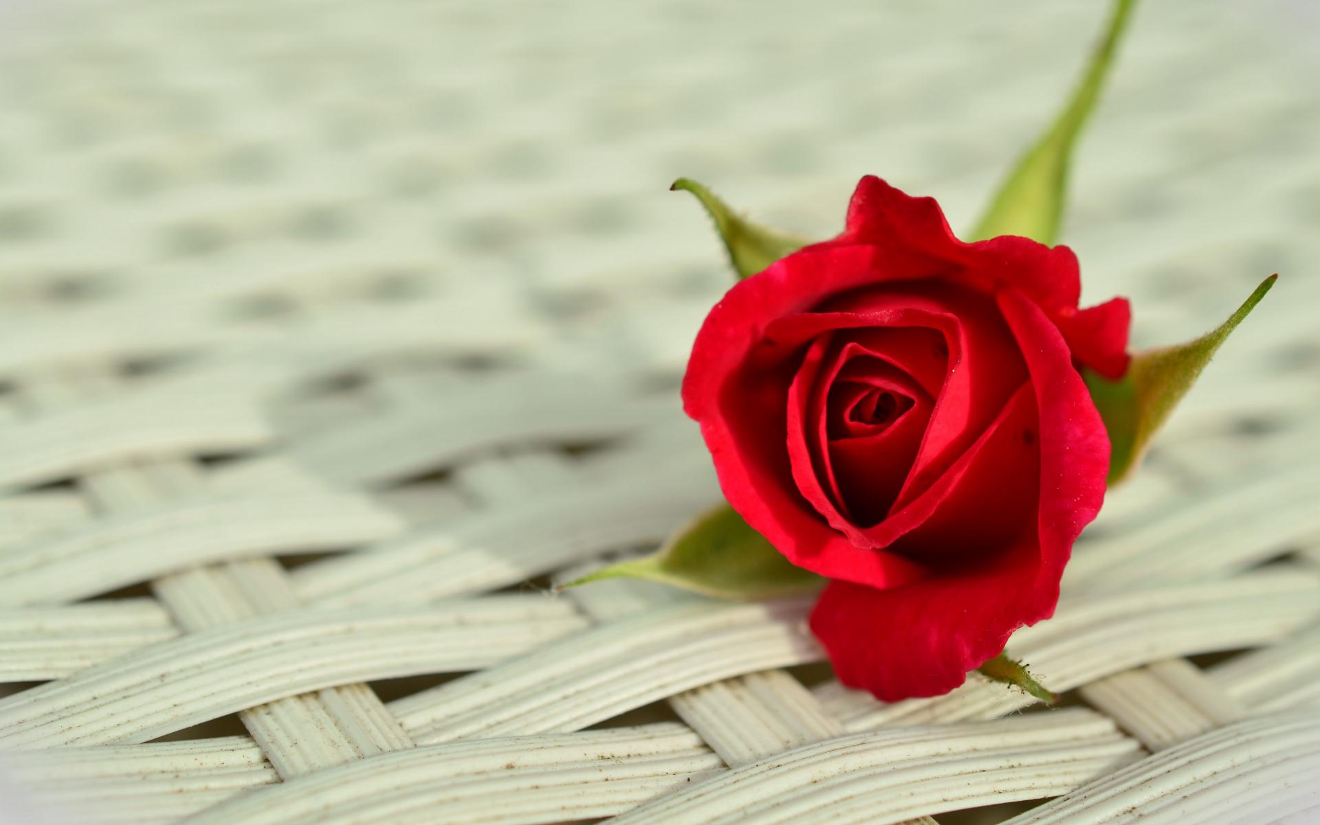 Wallpaper Red rose flower on wicker surface