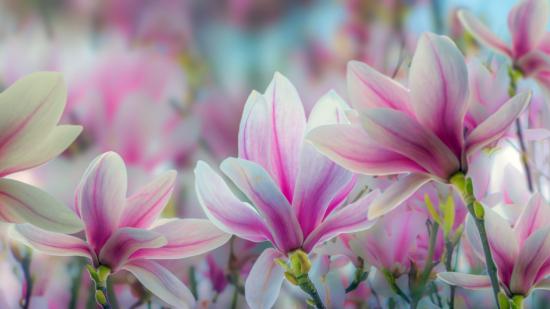 Wallpaper Pink magnolia flowers close up