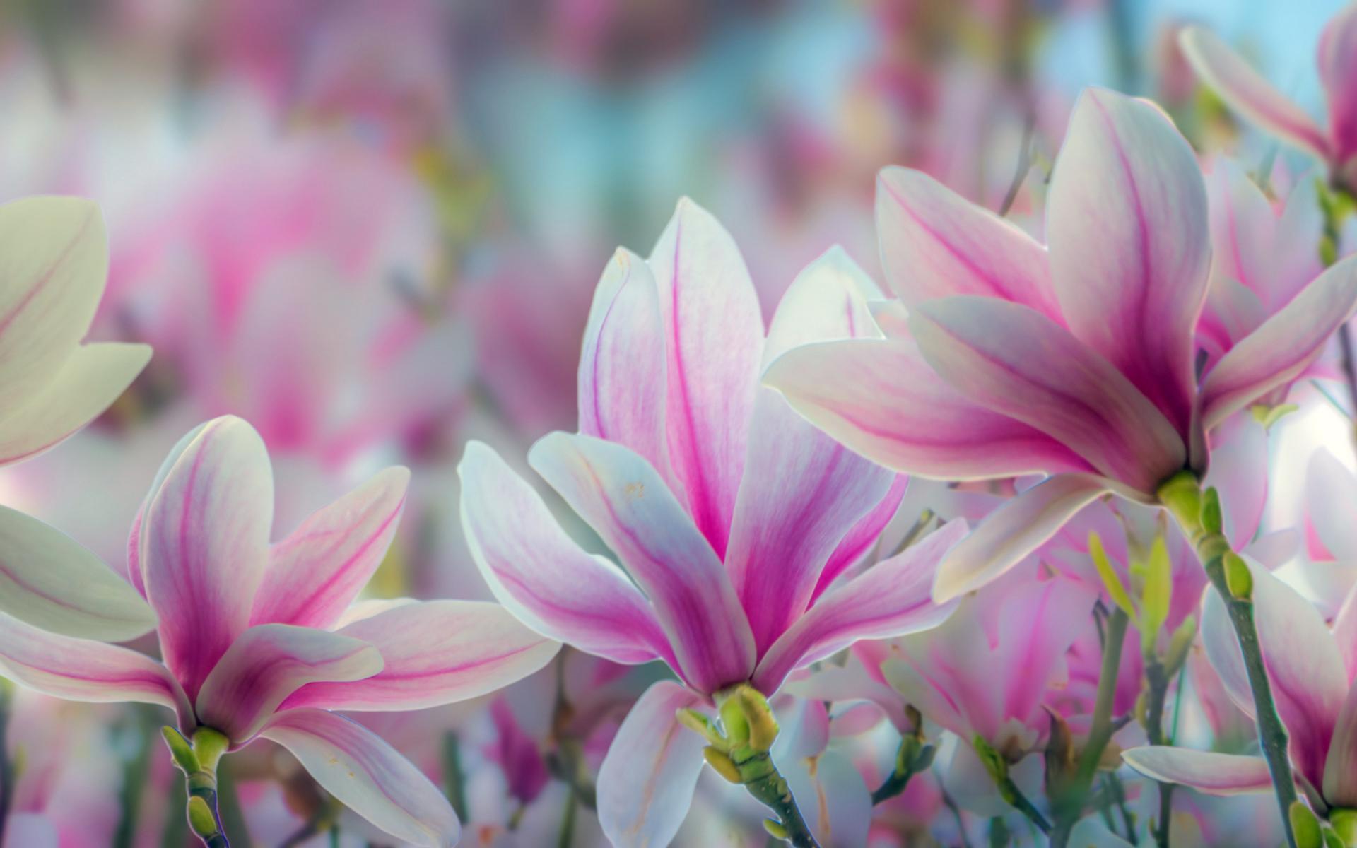 Wallpaper Pink magnolia flowers close up