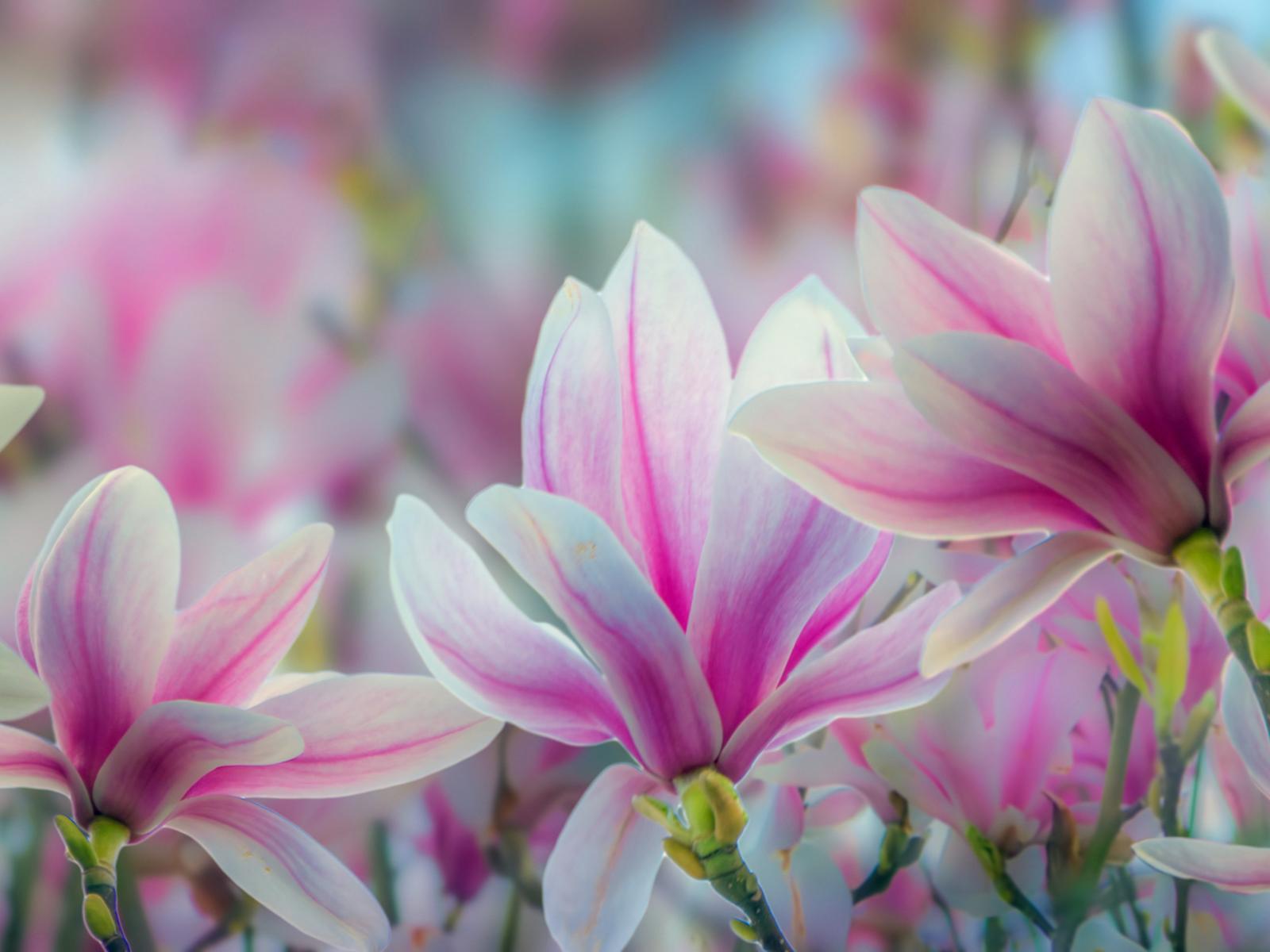 Wallpaper Pink magnolia flowers close up