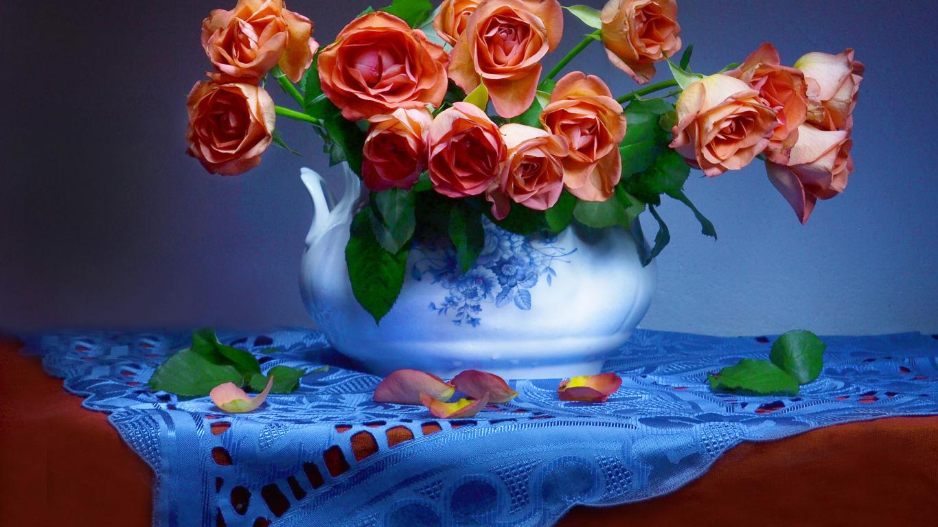 Wallpaper A bouquet of orange roses in a vase on the table
