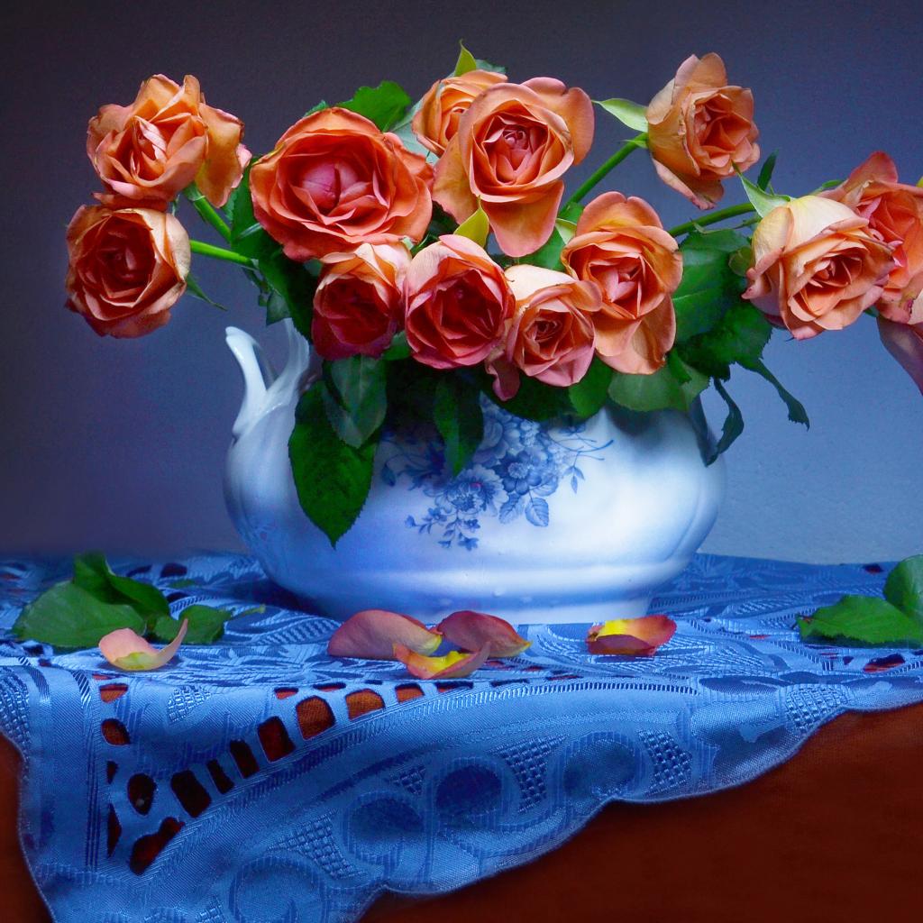 Wallpaper A bouquet of orange roses in a vase on the table