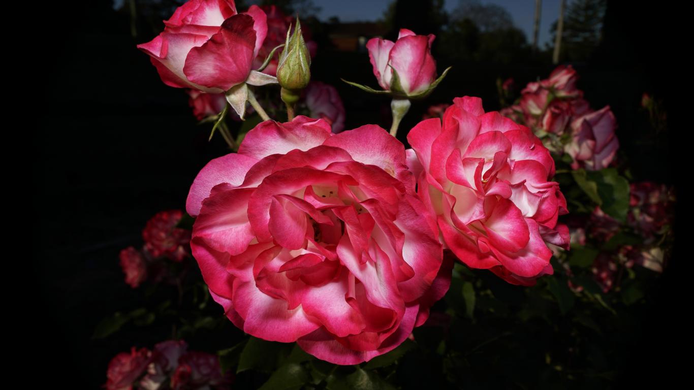 Wallpaper Beautiful pink roses with buds on the flowerbed