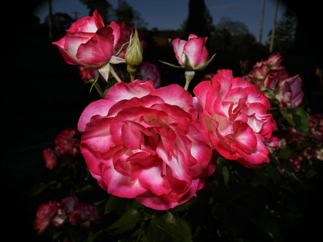 Wallpaper Beautiful pink roses with buds on the flowerbed