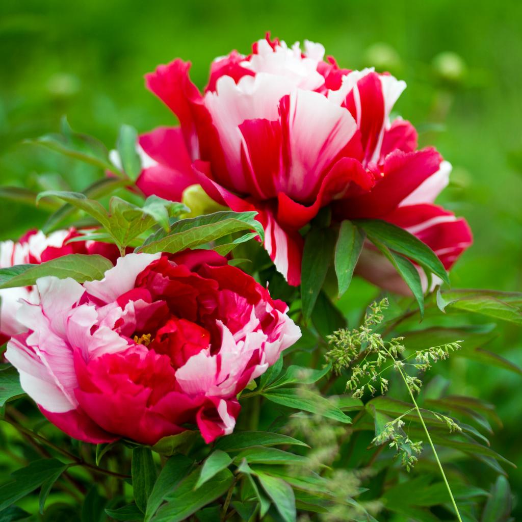 Wallpaper Beautiful soft white peonies on the flowerbed