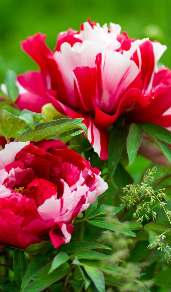 Wallpaper Beautiful soft white peonies on the flowerbed