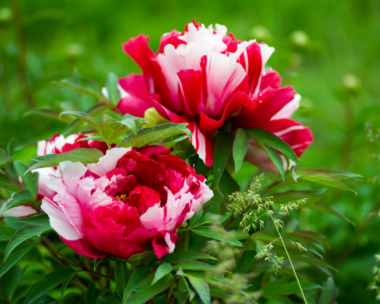 Wallpaper Beautiful soft white peonies on the flowerbed