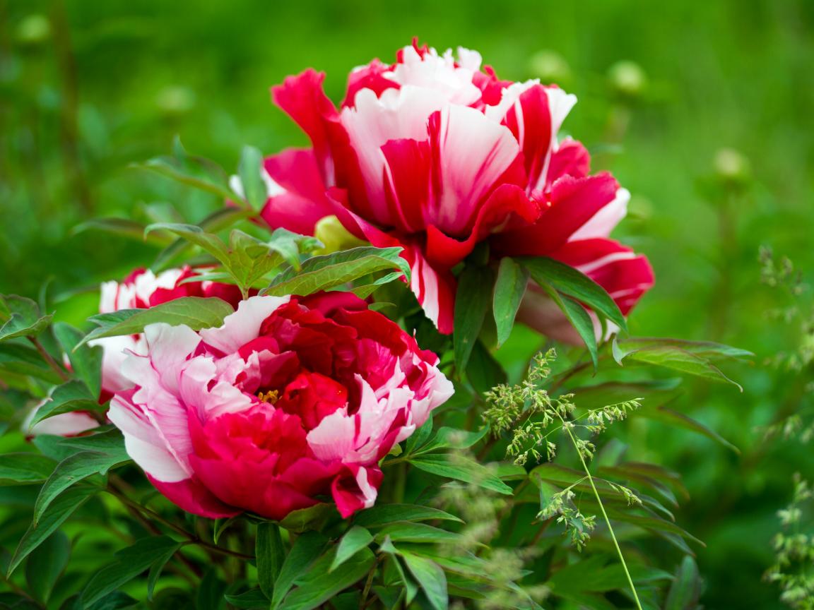 Wallpaper Beautiful soft white peonies on the flowerbed