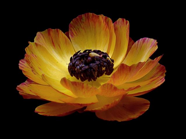 Wallpaper Beautiful orange buttercup on a black background