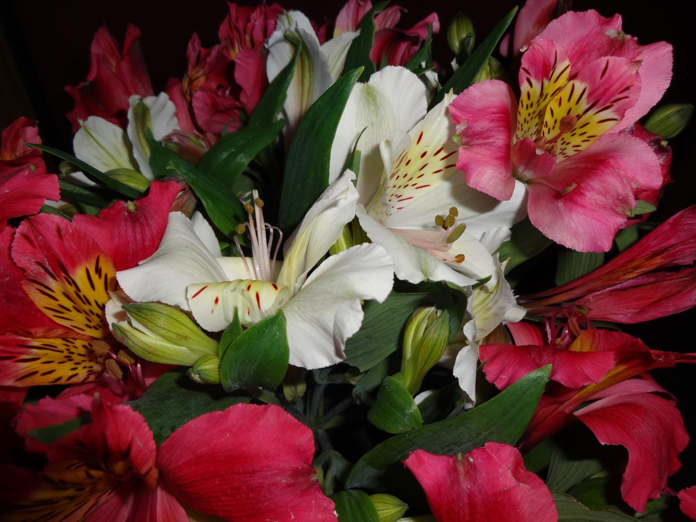 Wallpaper Pink and white flowers of Alstroemeria closeup