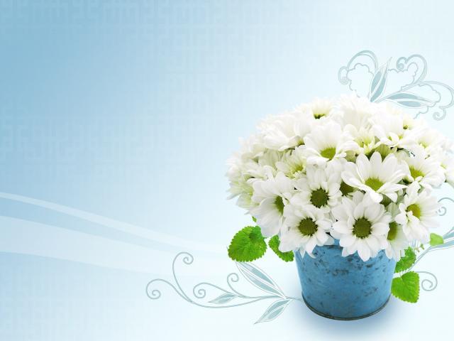 Wallpaper White beautiful chrysanthemum on a blue background
