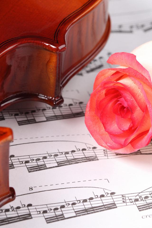 Wallpaper Beautiful pink rose on violin notes