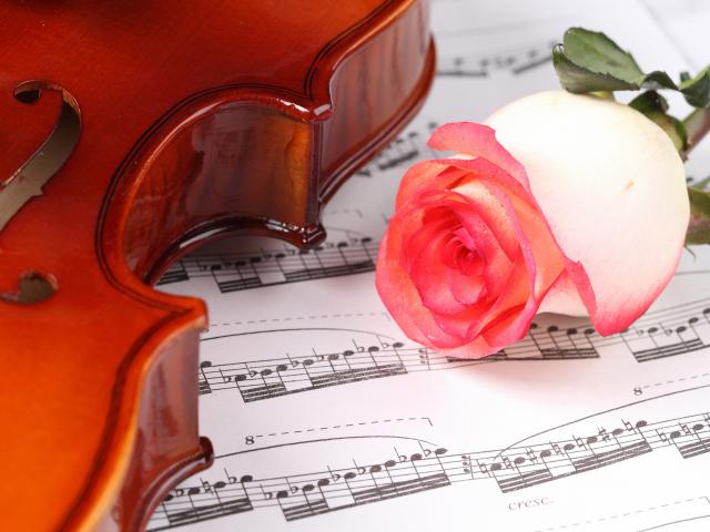 » Wallpaper Beautiful pink rose on violin notes