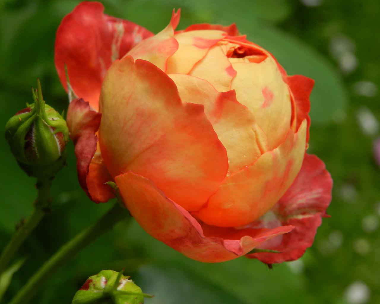 Wallpaper Beautiful orange - yellow rose in drops of dew