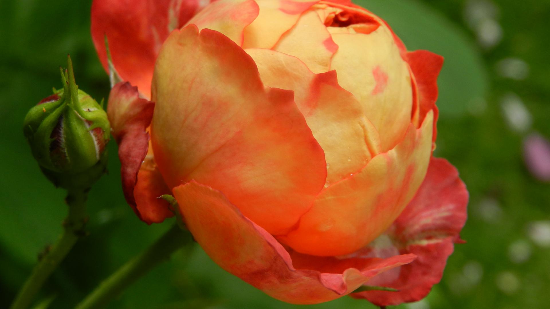 Wallpaper Beautiful orange - yellow rose in drops of dew