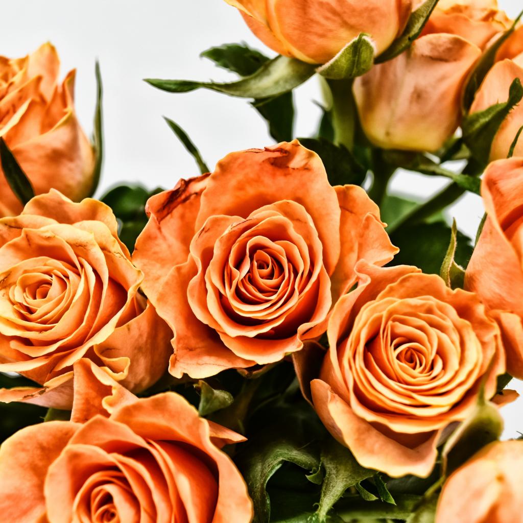 Wallpaper Bouquet of orange roses on a gray background close up