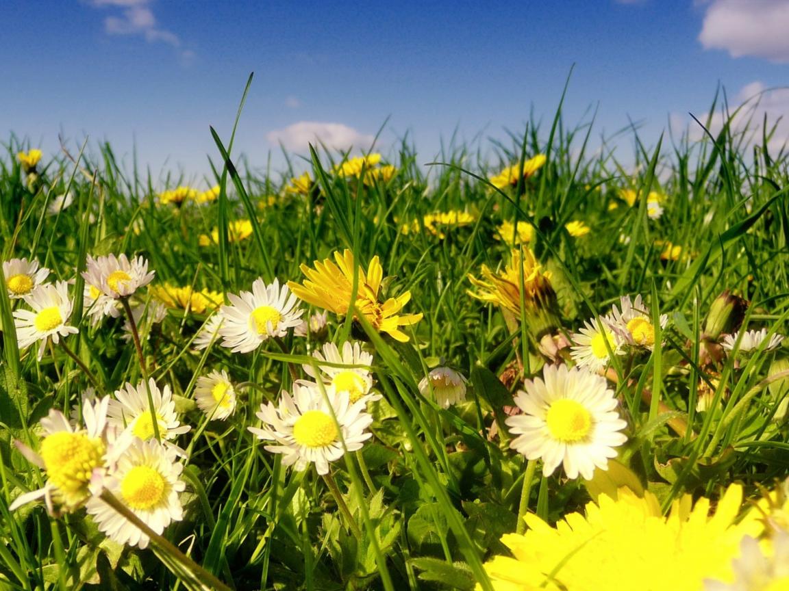 Wallpaper Beautiful white daisies with dandelions in green grass