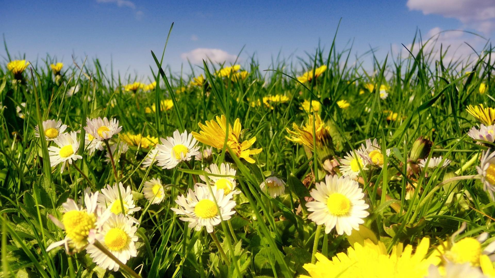 Wallpaper Beautiful white daisies with dandelions in green grass