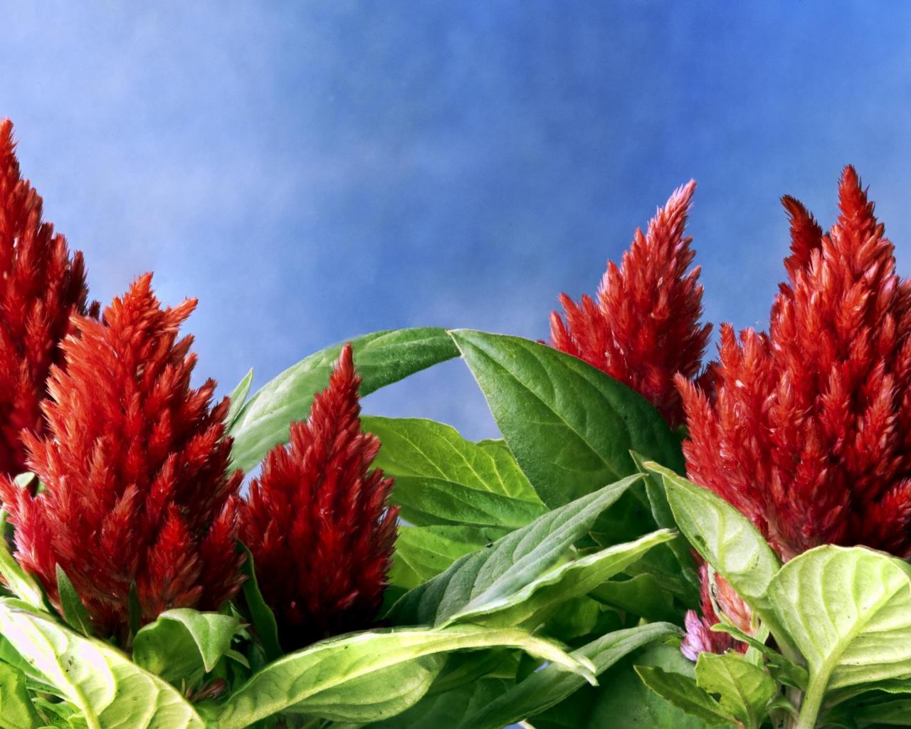 Wallpaper Beautiful red flowers amaranth on a blue background