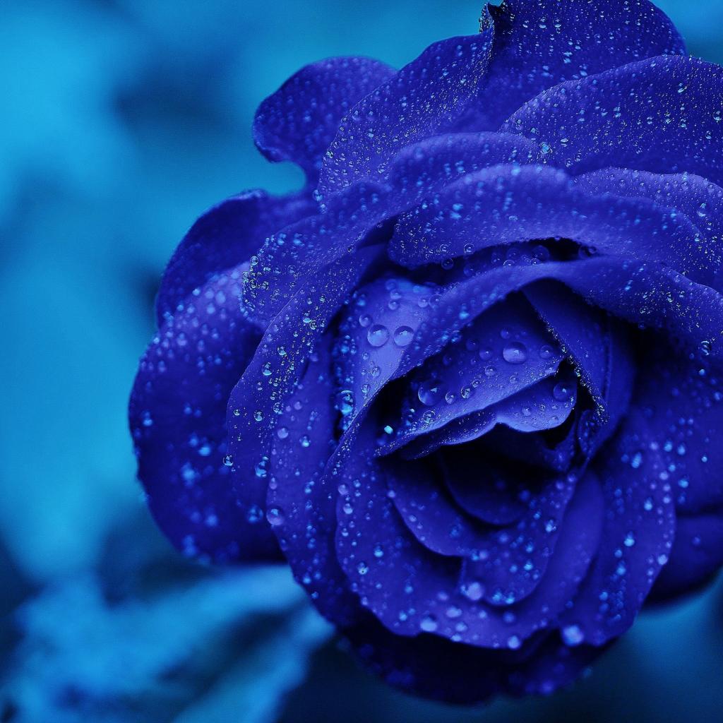 Wallpaper Blue rose in dew drops close up