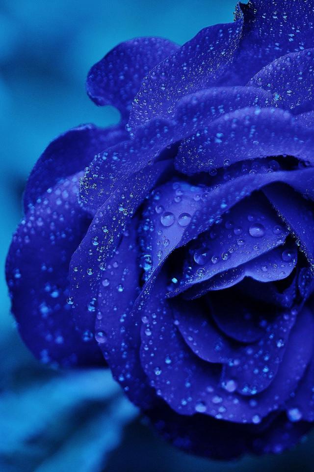 Wallpaper Blue rose in dew drops close up