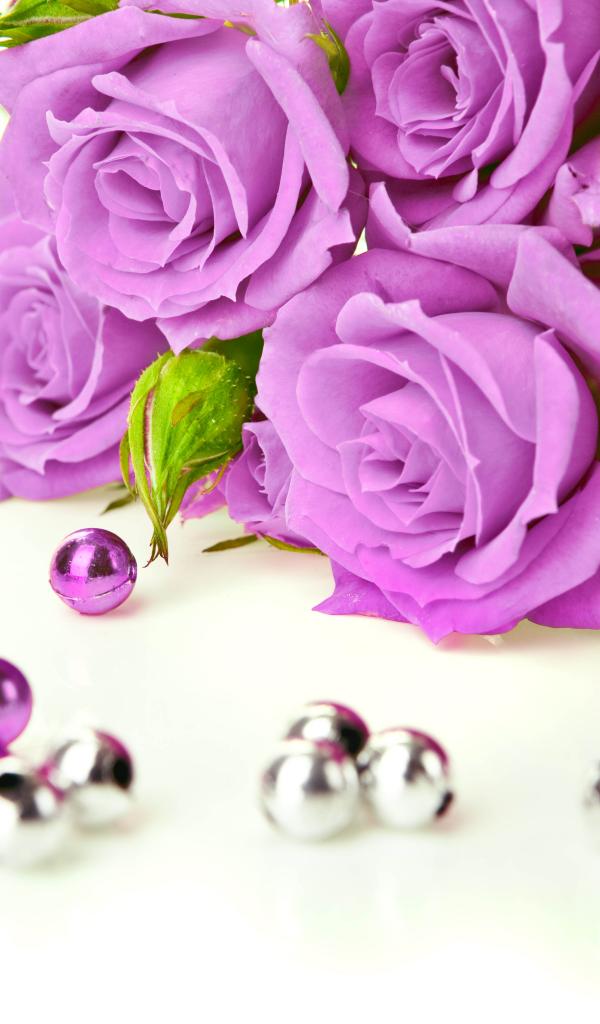Wallpaper Lilac roses with beads on a white background