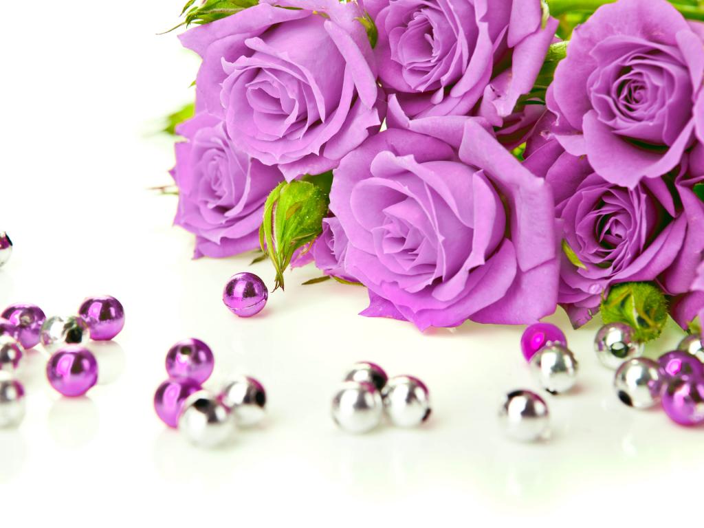 Wallpaper Lilac roses with beads on a white background