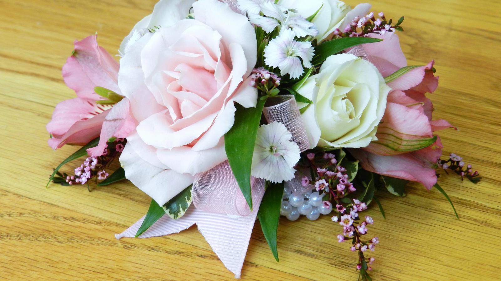 » Wallpaper Beautiful flowers on a wooden table