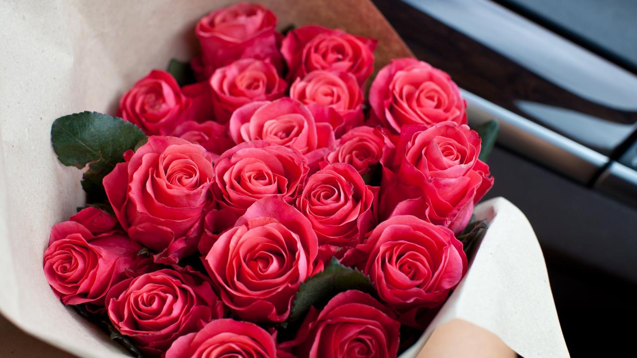Wallpaper Big beautiful bouquet of pink roses as a gift on March 8