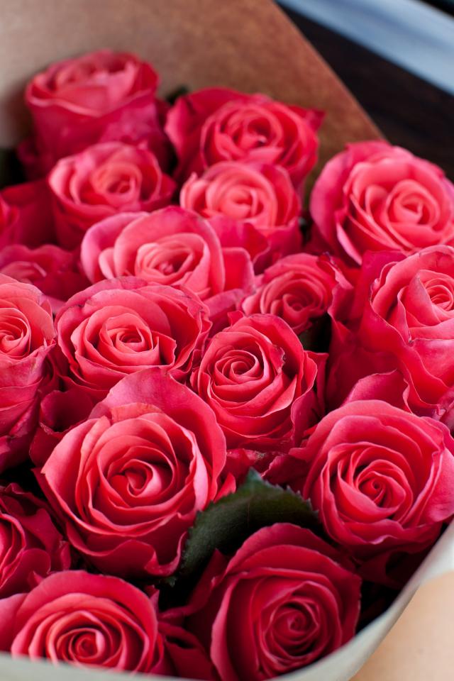 Wallpaper Big beautiful bouquet of pink roses as a gift on March 8