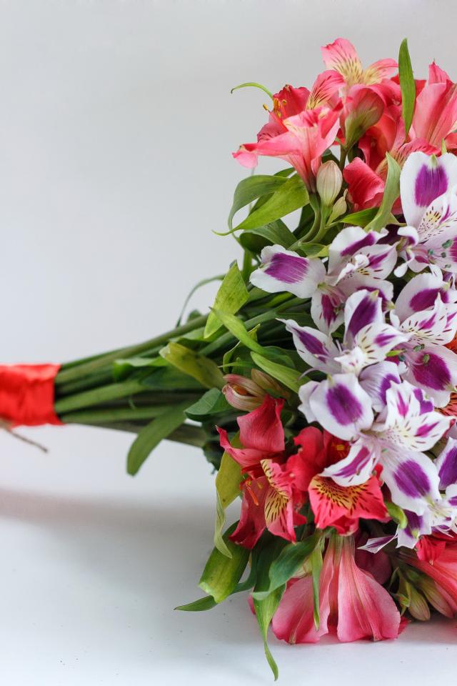 Wallpaper A bouquet of flowers Alstroemeria on a gray background