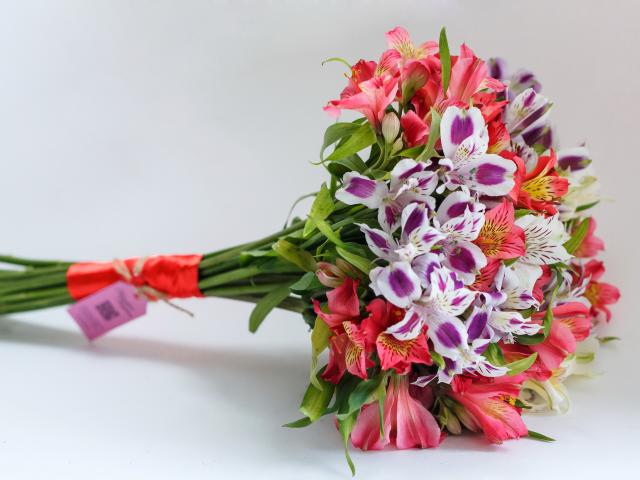 Wallpaper A bouquet of flowers Alstroemeria on a gray background