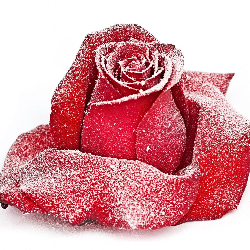 Wallpaper Red rose covered with hoarfrost close up