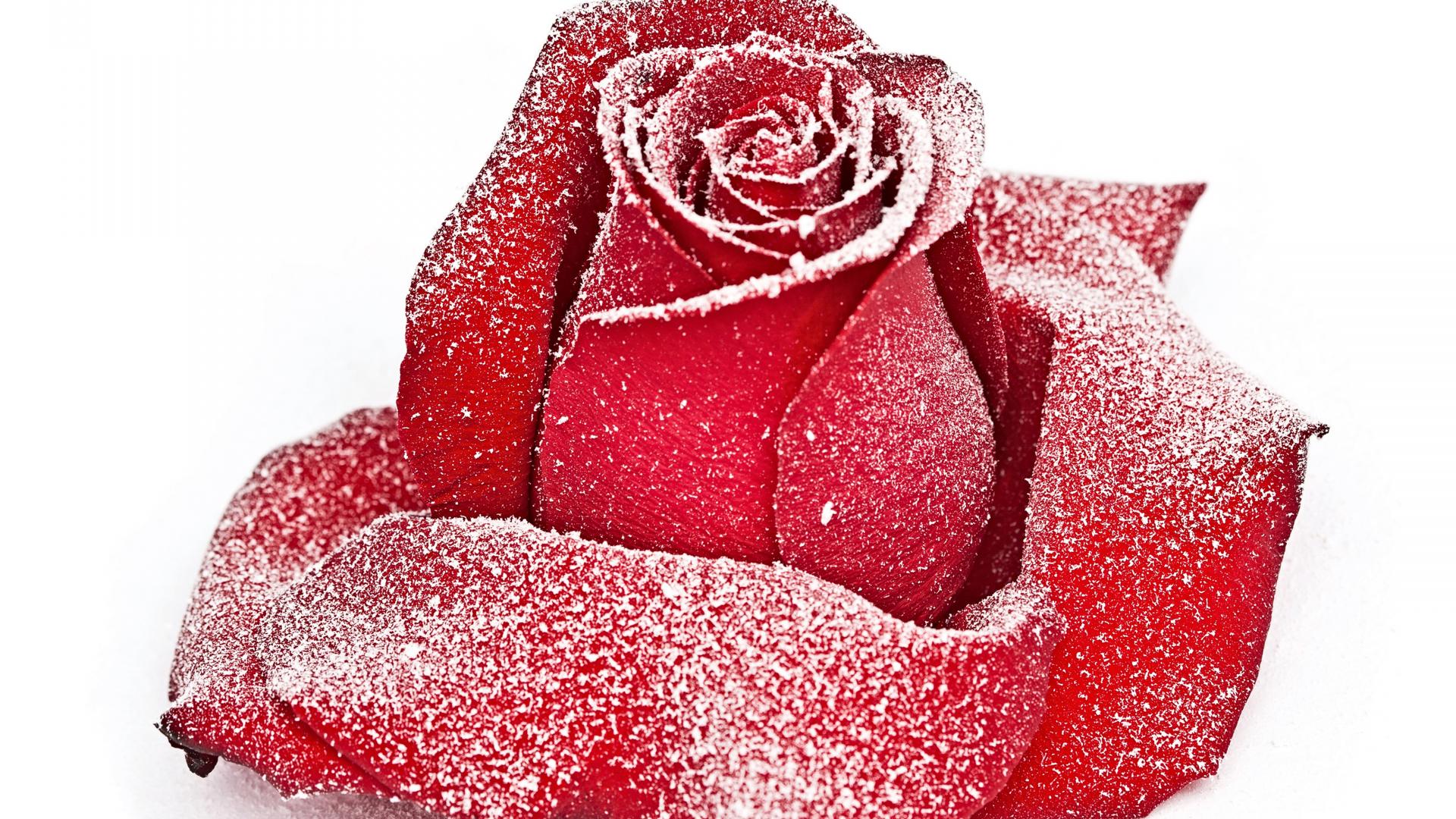Wallpaper Red rose covered with hoarfrost close up