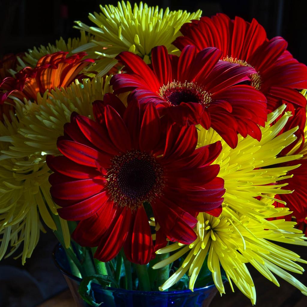 Wallpaper Bouquet of yellow chrysanthemums with red gerberas
