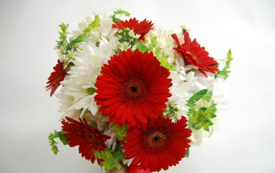 Wallpaper Bouquet of white chrysanthemums with red gerberas