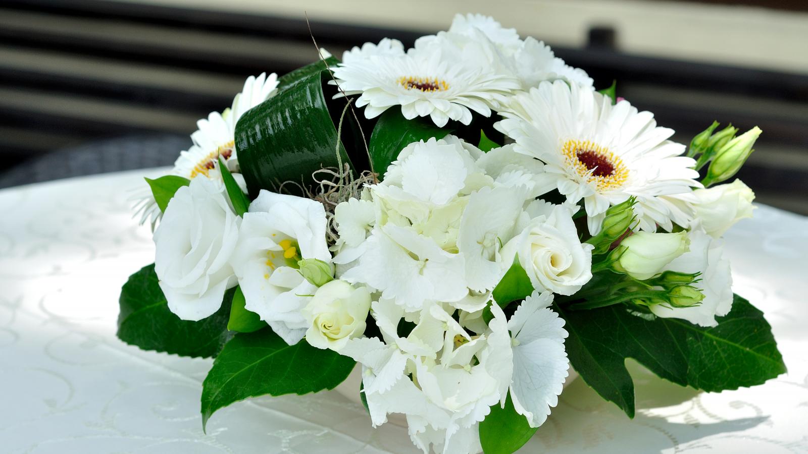 Wallpaper Festive bouquet with flowers of roses, eustoma and gerberas